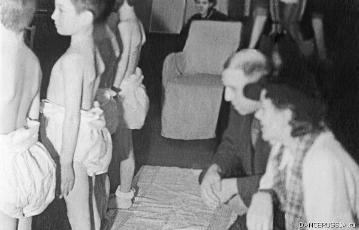 "В декабре 1942 г., – вспоминает Л.И. Ярмолович (педагог ЛХУ), – еще в пору полной блокады города, оставшаяся в Ленинграде часть педагогического коллектива во главе с и. о. директора училища Л.С. Тагер организовала первый набор детей в первый класс. Об этом было объявлено по радио. Я вместе с В.С. Костровицкой и А.П. Бажаевой отправилась для предварительного отбора детей в детские дома города. Затем этих ребят после медицинского осмотра уже окончательно отбирала приемная комиссия в составе артистов: О.Г. Иордан, Н.В. Пельцер, М. Снежиной, А.А. Орлова и педагогов училища В.С. Костровицкой, Л.И. Ярмолович и А.П. Бажаевой. Прием происходил в единственном отапливаемом буржуйкой помещении канцелярии. Все ребята были очень худенькие, наголо стриженные, но чистенькие и хорошо были одеты".