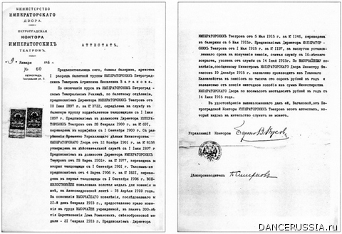 Уникален «Аттестатъ», выданный «бывшей балерине, артистке 1-го разряда балетной труппы Императорских Петроградских театров Агриппине Яковлевне Вагановой», – документ, где увековечен весь путь артистки на Мариинской сцене.