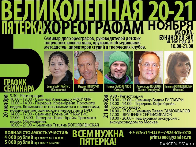 | ВСЕМ НУЖНА ПЯТЕРКА! Семинар для хореографов, руководителей детских творческих коллективов, кружков и объединений, методистов, директоров студий и творческих клубов.