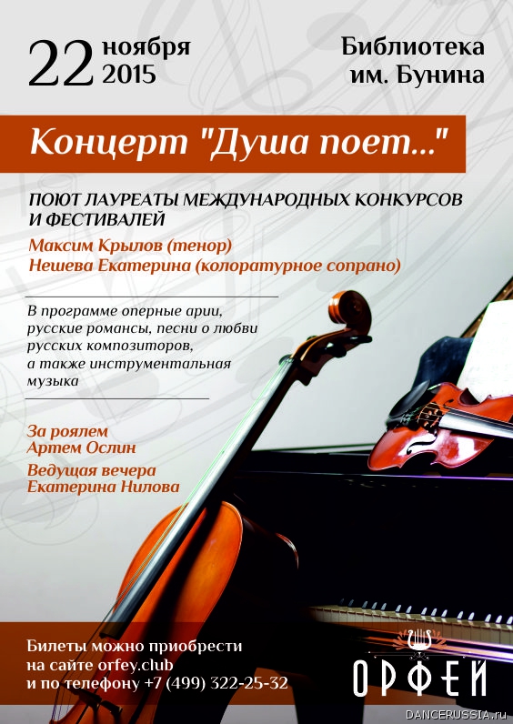 | В БУНИНСКОМ ЗАЛЕ "ДУША ПОЕТ" Что может быть прекраснее удивительной музыки и волшебных слов русских классиков от литературы и музыки? Вопрос не требующий ответа.