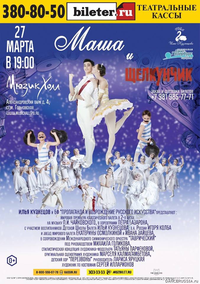 | Маша и Щелкунчик Илья Кузнецов и Благотворительный Фонд "Пропаганда и возрождение русского искусства" представляют танцевальный спектакль "Маша и Щелкунчик" в Санкт-Перербурге.