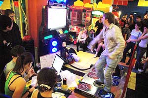 В разных странах мира соревнования по pump-it-up проводятся каждый год. Ну а воронежский чемпионат можно даже назвать международным, потому что на него приехали маститые танцоры не только из Москвы и Ростова, но даже из Киева — для них проводился отдельный зачёт, так как уровень сложности у них просто сумасшедший: на компьютере плывёт густой частокол стрелок. Как можно исхитриться двумя ногами наступить сразу на пять квадратов, мы так и не уразумели, но ведь у них получалось! 16-летний Сергей ЧЕСНОКОВ, один из самых крутых воронежских танцоров, рассказал, что увлёкся музыкальными автоматами примерно год назад и с тех пор только что не ночует в игровом клубе. В будни он бежит сюда сразу после уроков, а в выходные после завтрака — и до закрытия. «Я раньше занимался бальными танцами, но это, конечно, не такой драйв, — говорит Серёжа. — Денег, безусловно, уходит немало: по 2 тысячи в неделю, иногда по 3...» — Ну и что? Эти затраты сопоставимы с занятиями в тренажёрке или в бассейне, если заниматься с той же интенсивностью, — уверяет нас 27-летний «гуру» pump-it-up из Киева Андрей ФИДРЯ. — Я, например, работаю программистом, то бишь целый день не встаю со стула. Поэтому мне потом размяться очень даже полезно! Очень, скажу вам, эффективная гимнастика — мои знакомые через месяц занятий на «Pump-it-up» худели на 6 кг. Личный рекорд Андрея — 6 часов непрерывных танцев на паде. Такими темпами и дыхалка приходит в тонус, и мускулатура ног... А вы говорите — «однорукие бандиты»...