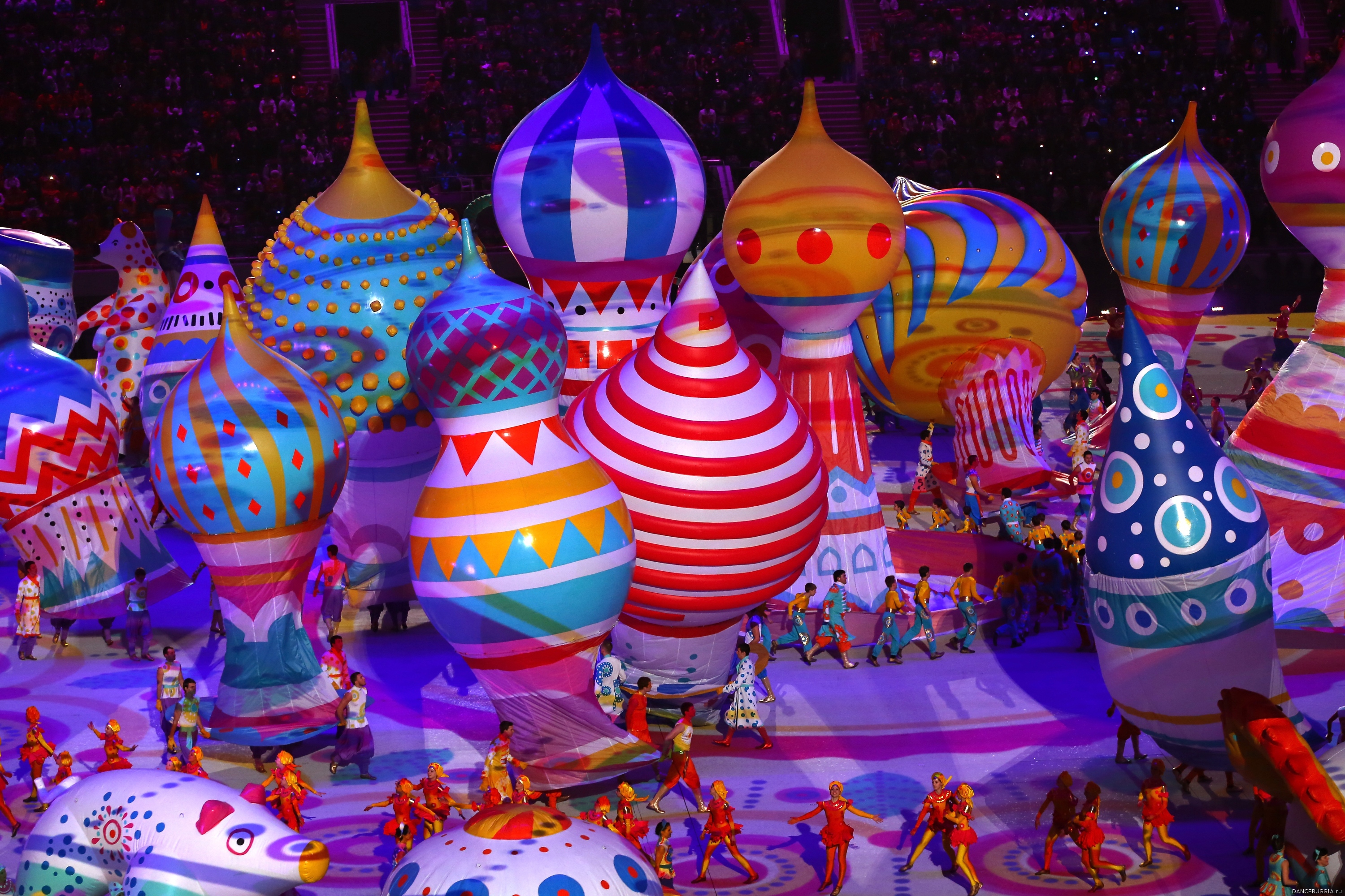 В самом массовом выходе танцоров на арене сочинского стадиона Фишт, превратившегося в зал императорского дворца, на паркет которого на свой первый бал вышла Наташа Ростова в исполнении примы-балерины Большого Светланы Захаровой, участвовали спортсмены из Союза танцевального спорта России. Организацию, созданную в 2013 году и объединившую 75 тыс. танцоров, возглавляет народный художник РФ, член президентского совета по культуре и искусству Валентин Юдашкин. О том, что спортсмены СТСР примут участие в церемонии открытия Игр, он говорил еще в прошлом году, приглашая всех желающих воспользоваться такой возможностью, пройти конкурсный отбор и показать себя. Юдашкин, лоббирующий включение танцевального спорта в олимпийскую программу, обещал, что танцев на Играх в Сочи будет много. Он не лукавил: танцоры стали украшением самого длительного по времени и массового эпизода, напомнившего миру, как умеет танцевать русская душа. К слову, Юдашкин не единожды заявлял, что включение танцев в олимпийскую программу будет способствовать популяризации данного вида спорта и обеспечит отличную подготовительную и воспитательную базу танцорам, имеющим высокие результаты на мировом уровне. Изначально Министерство спорта предоставило СТСР 2 тыс. мест для танцоров организации, которые должны были быть задействованы в ходе Олимпиады. В церемонии открытия приняли участие более 300 человек со всей России. В СТСР рассказали, что в Сочи собрались ребята из Краснодара, Волгограда, Астрахани, Тюмени, Москвы, Ростова-на-Дону, Челябинска, Рязани, Белгорода, Армавира, г. Анапы, Крымска, города Гулькевичи, Кропоткина, ст. Каневская, Новороссийска, Тимашевска, Белореченска, Геленджика, Майкопа, Славянска-на-Кубани, Апшеронска, Смоленска, Воронежа, Липецка, Санкт-Петербурга, Иванова и, конечно, Сочи.